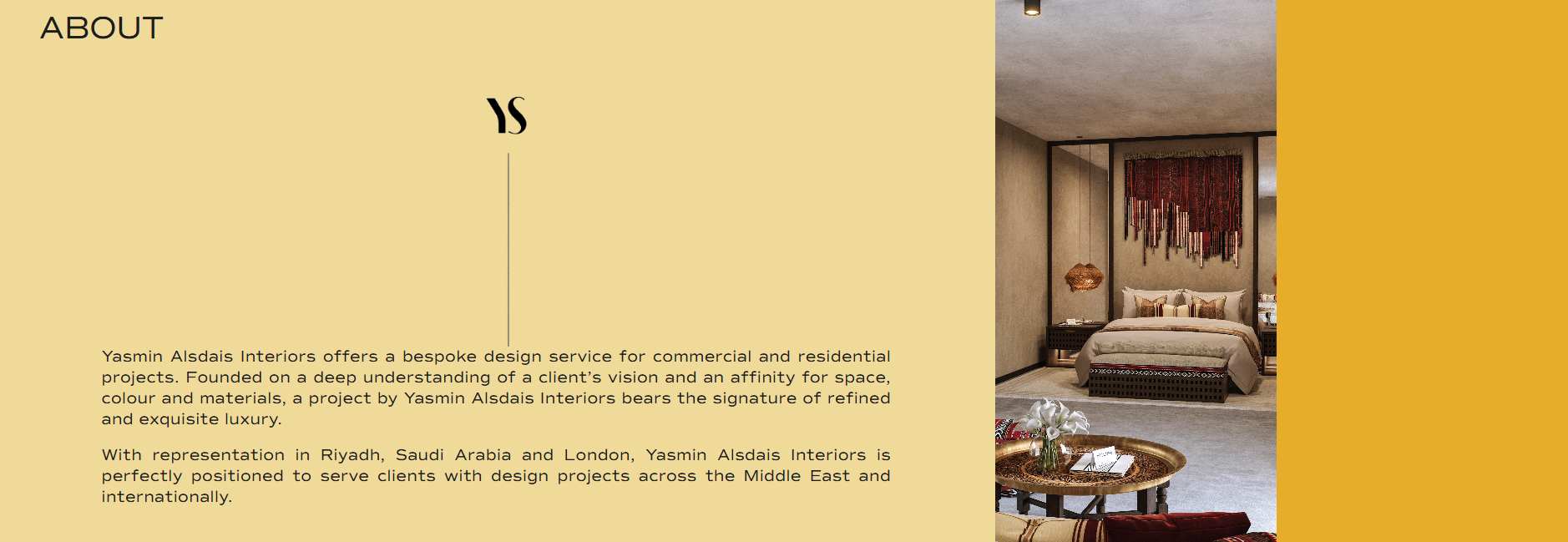 With representation in Riyadh, Saudi Arabia and London, Yasmin Alsdais Interiors is perfectly positioned to serve clients with design projects across the Middle East and internationally.