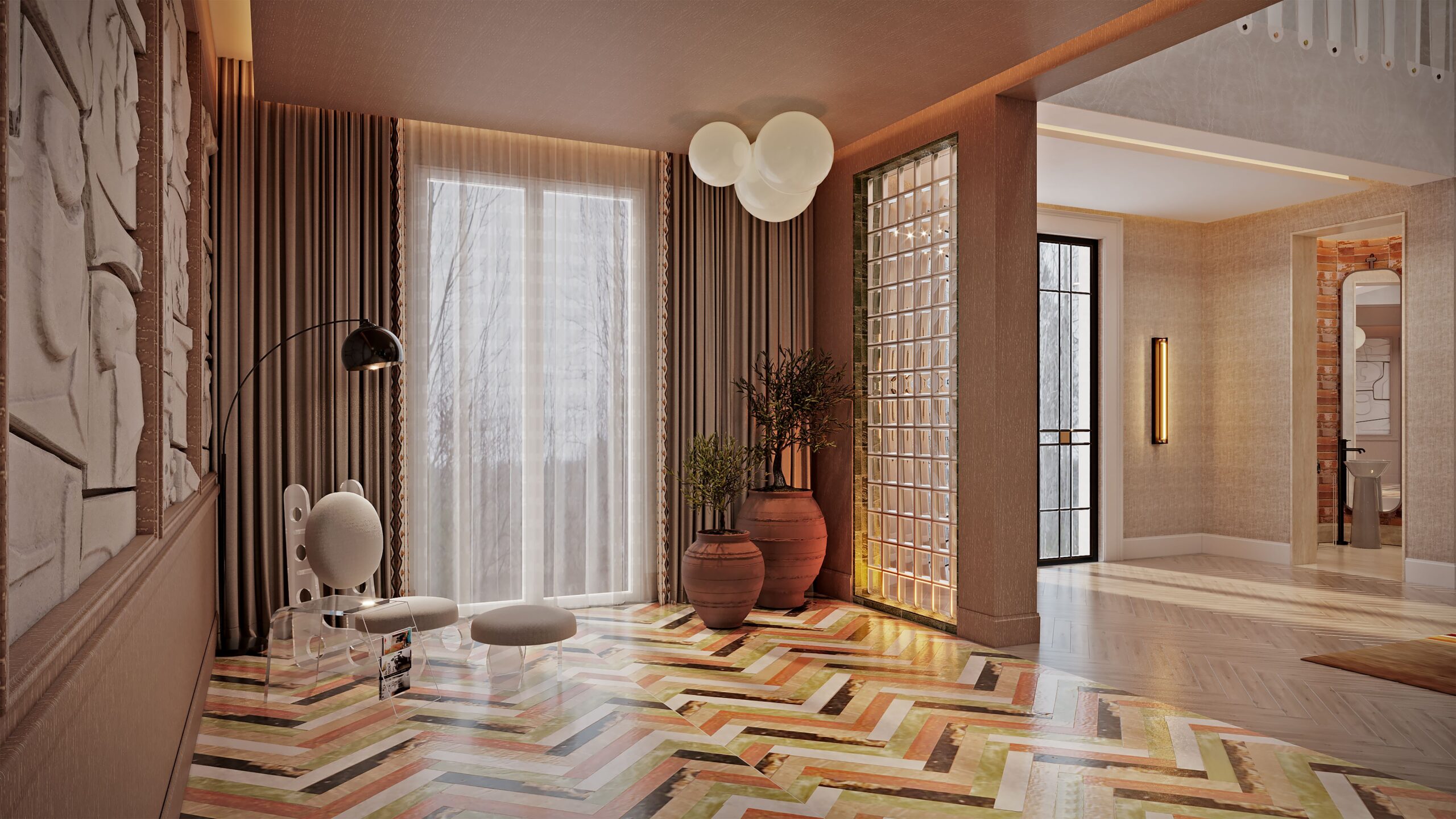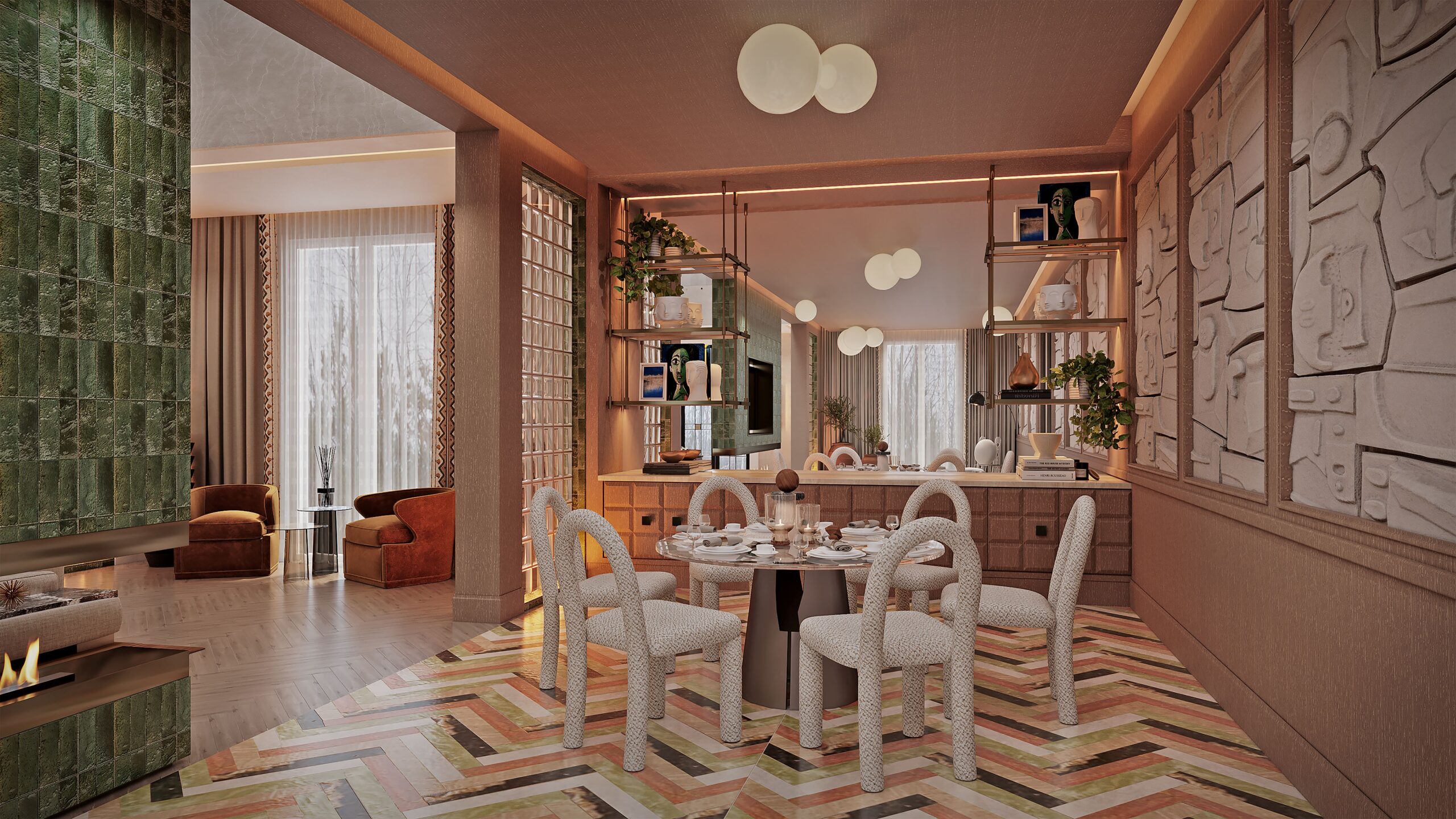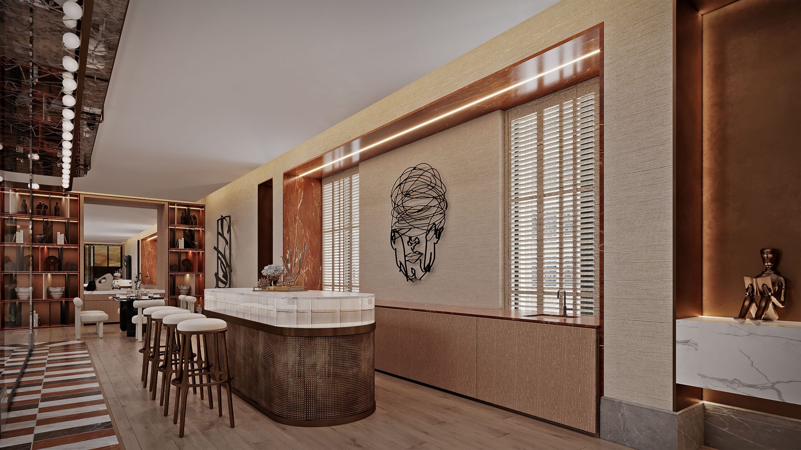 Incorporating art deco influences and mid-century modern elements, the design of this private residence is tailored to the needs of an artistic family, providing spaces for rest, play and gathering. Rich in detail and moments of awe, the Thamer Project is characterized by a classic yet contemporary design that blends luxury and creativity.